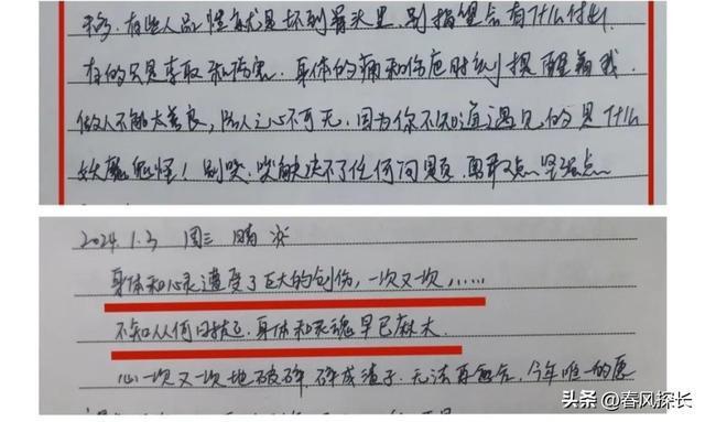 董先生在记者采访时,把整理女儿遗物时发现的那本日记本拿了出来,上面写满了绝望,让人看的心里真不是滋味儿。